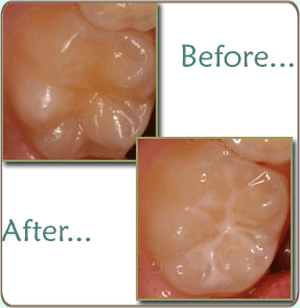 Sealants are a thin, plastic coating painted into the pits and fissures of the chewing surfaces of teeth. This procedure is usually done on the back teeth (molars) to aid in the prevention of tooth decay. The sealant quickly bonds to the enamel of the tooth, and thus forms a protective shield.